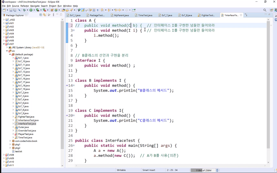 자바에서 인터페이스를 통해서 규격을 만들어서 반드시 규격에 맞게 사용할 수 있도록 한다.